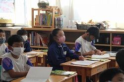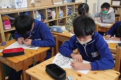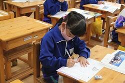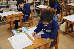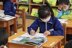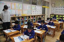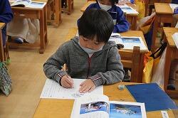 1年生の国語では説明文の読み取りを学習しています。説明文は、各段落の要点をまとめ、その構成を考えていくようになります。まずは、その第一歩。担任が出したポイントを書き出す学習を行いました。