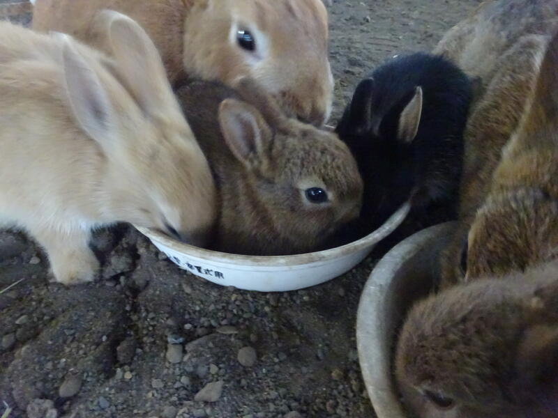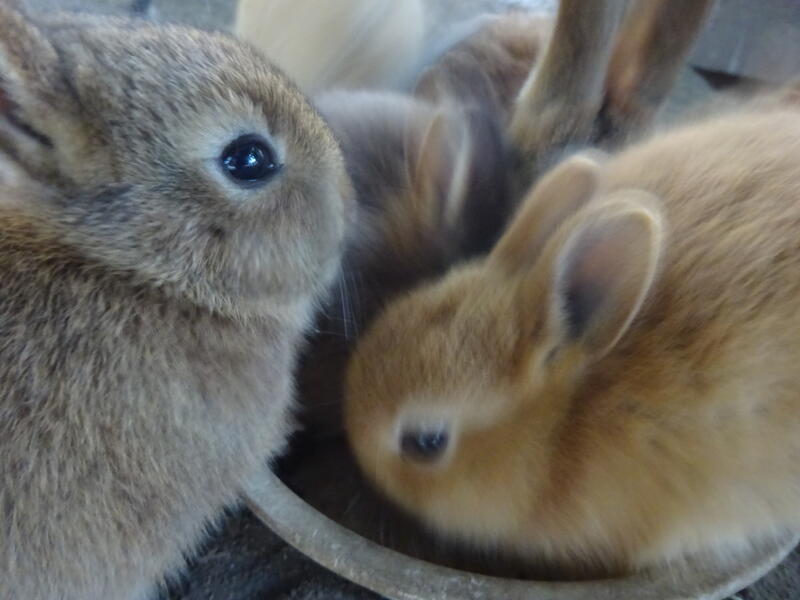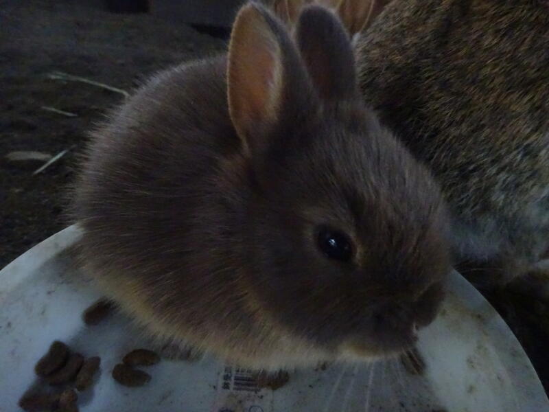 先日、確認されたウサギの赤ちゃんですが、すくすく育ち、えさを食べるようになりました。茶色が2羽、こげ茶が2羽、黒が1羽の合計5羽です。