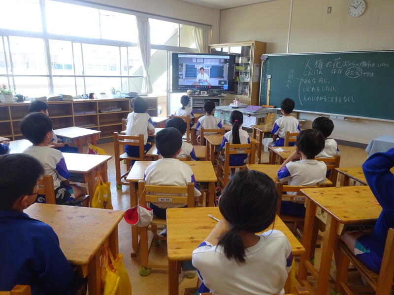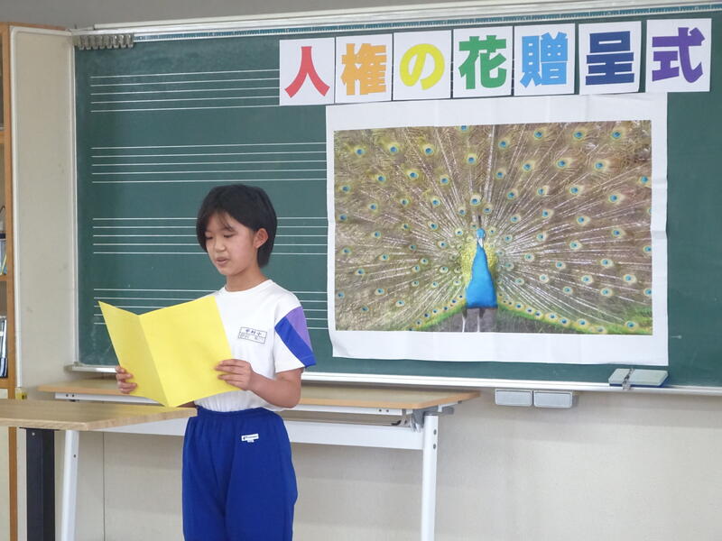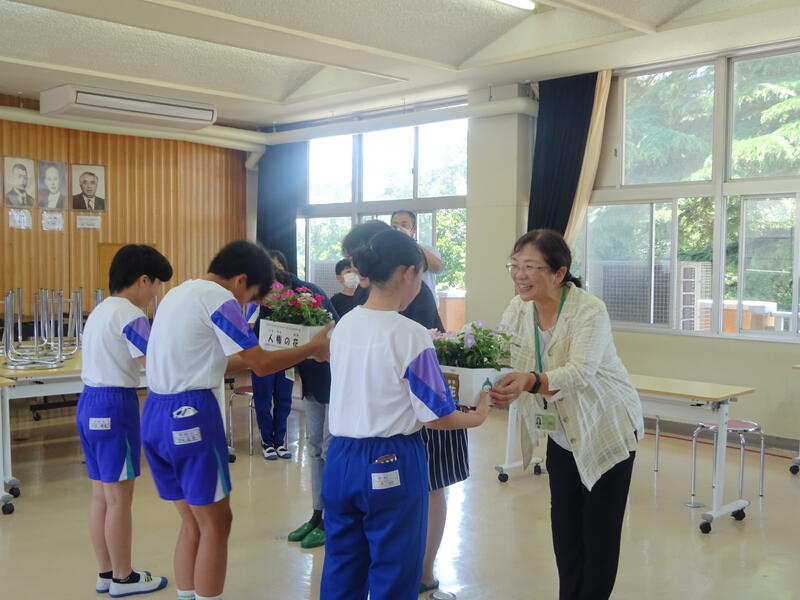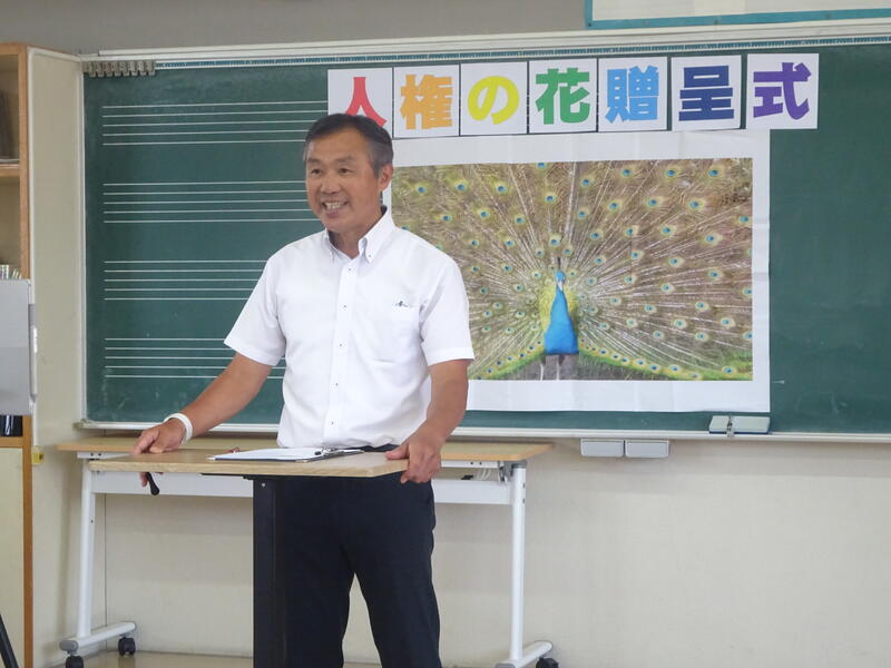 人権擁護委員さんが来校され、人権の花の贈呈式が行われました。各クラスには、オンラインで配信されました。生き物を大切に育てながら、周りの人に対して思いやりの気持ちを育てることができるようにというお話がありました。心にも素敵な花を咲かせていきましょう。