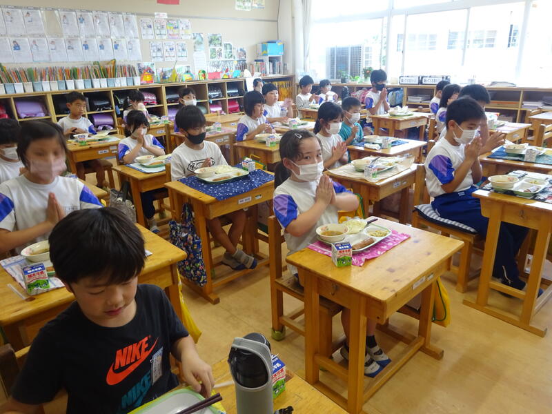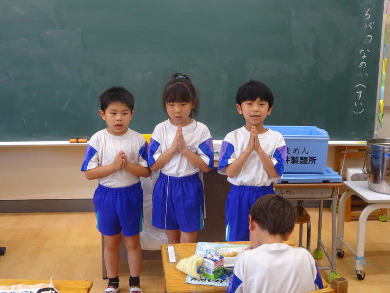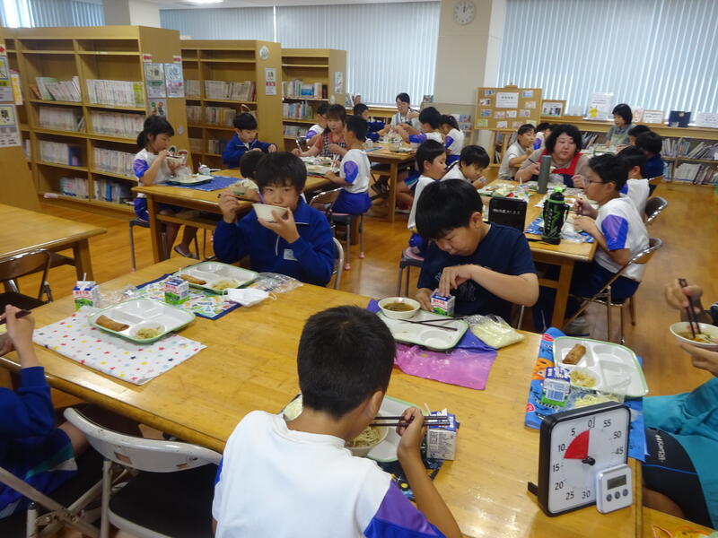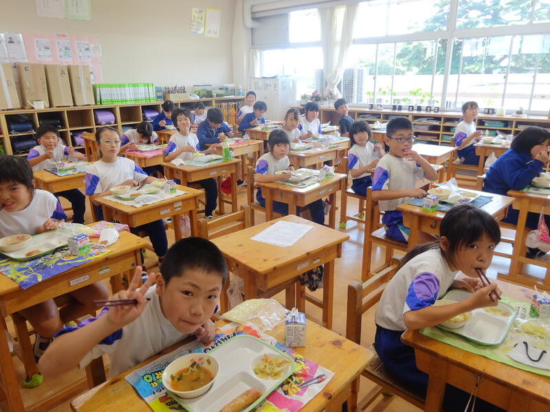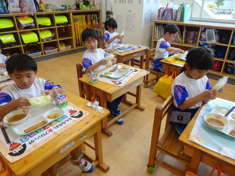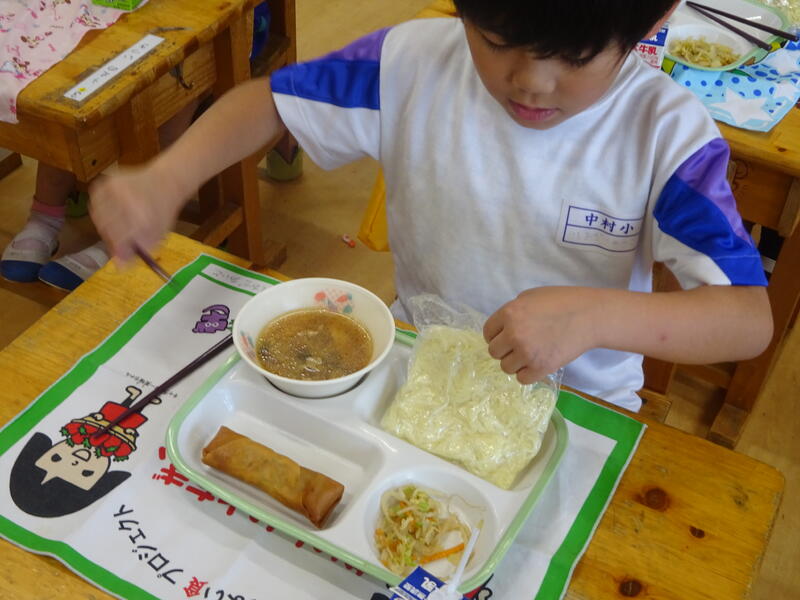 今日の給食は味噌ラーメンに春巻きでした。おいしそうに食べる姿がありました。