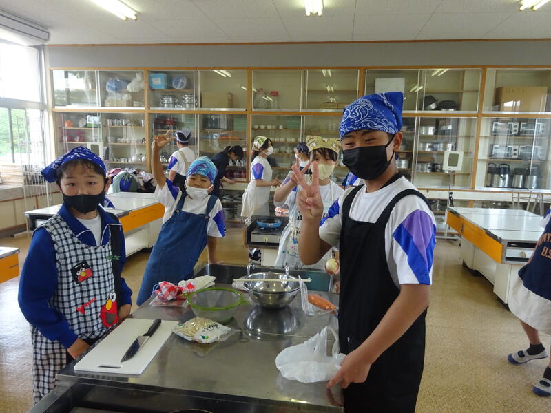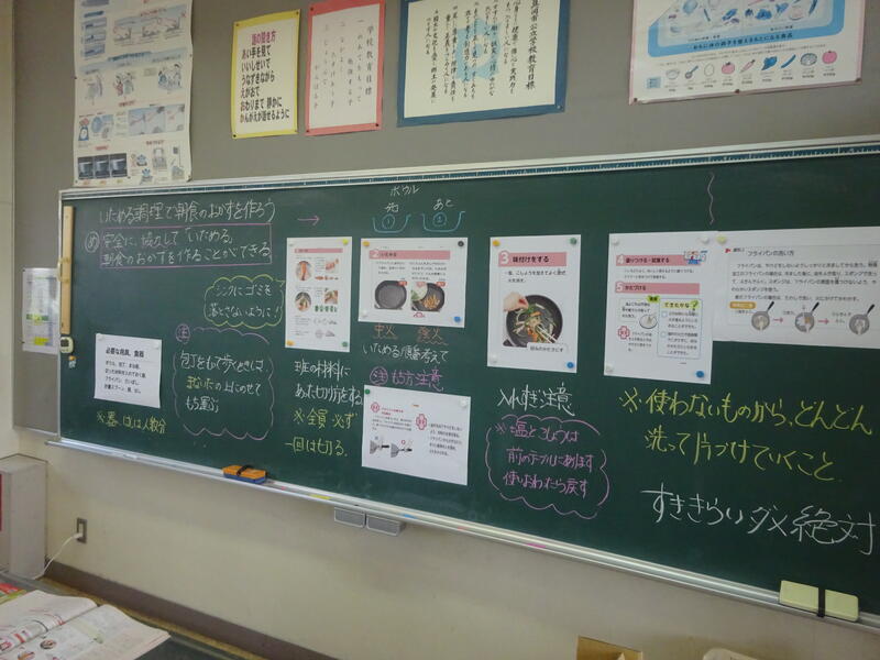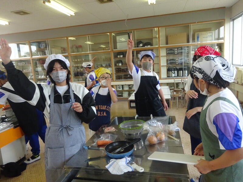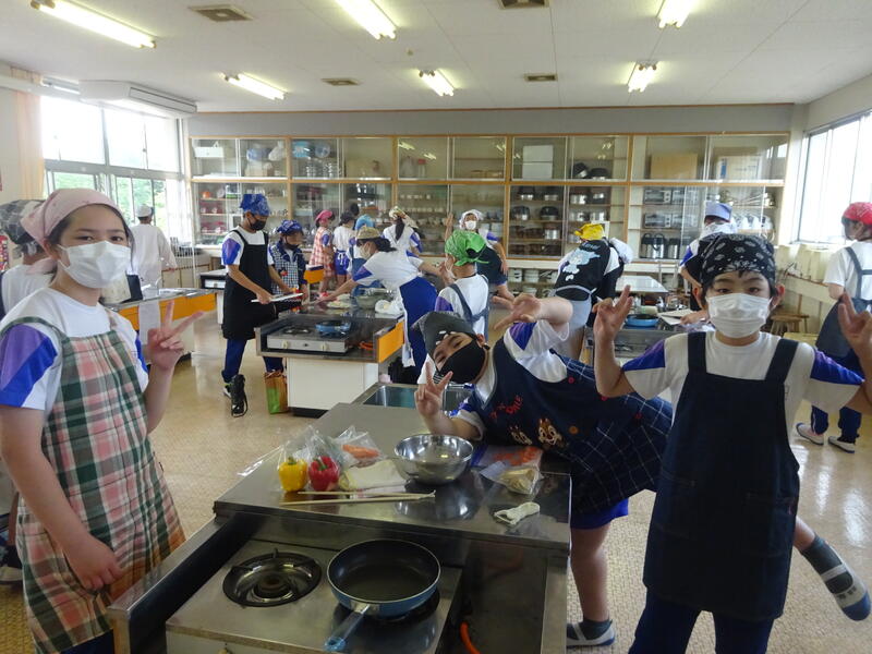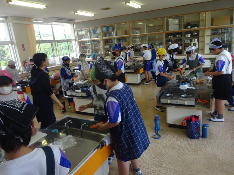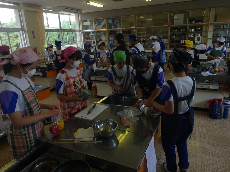 コロナ禍で、控えられていた家庭科の調理実習でしたが、感染対策等を行いながら、実施しています。朝食のおかずづくりのためにいためる調理を行いました。