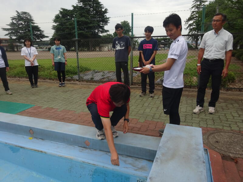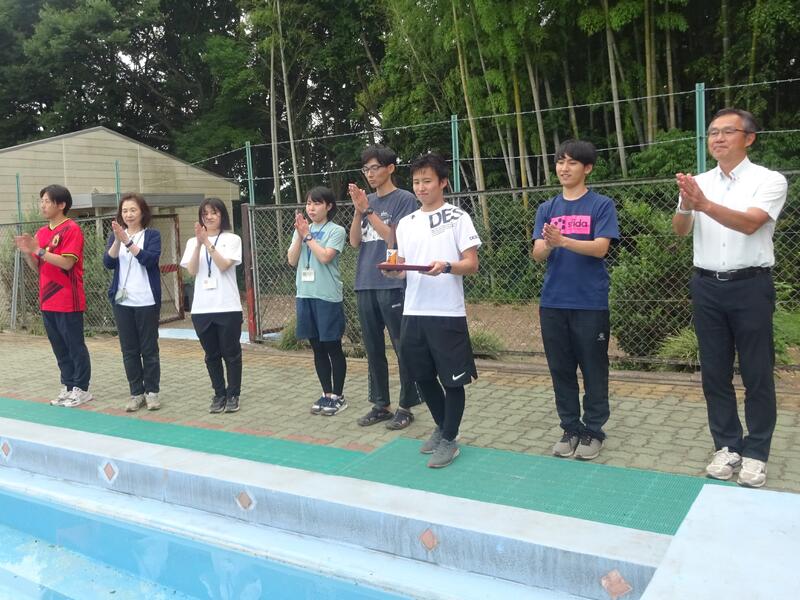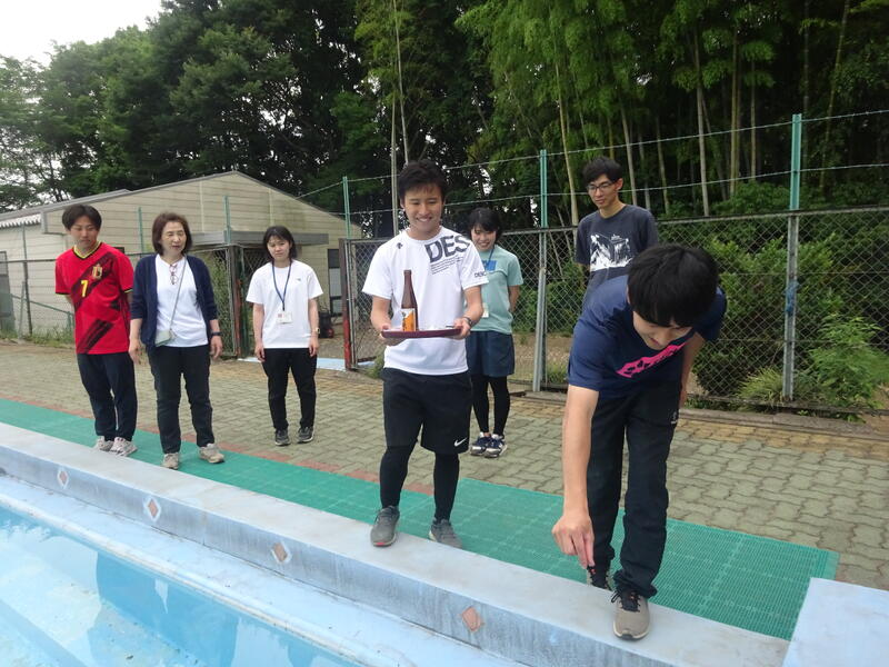 明日は、いよいよプール開きです。放課後、校長、体育部で安全祈願を行いました。無事に充実したプールでの活動ができるように願いました。