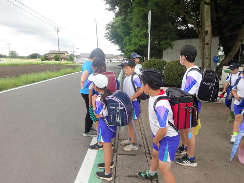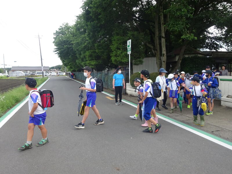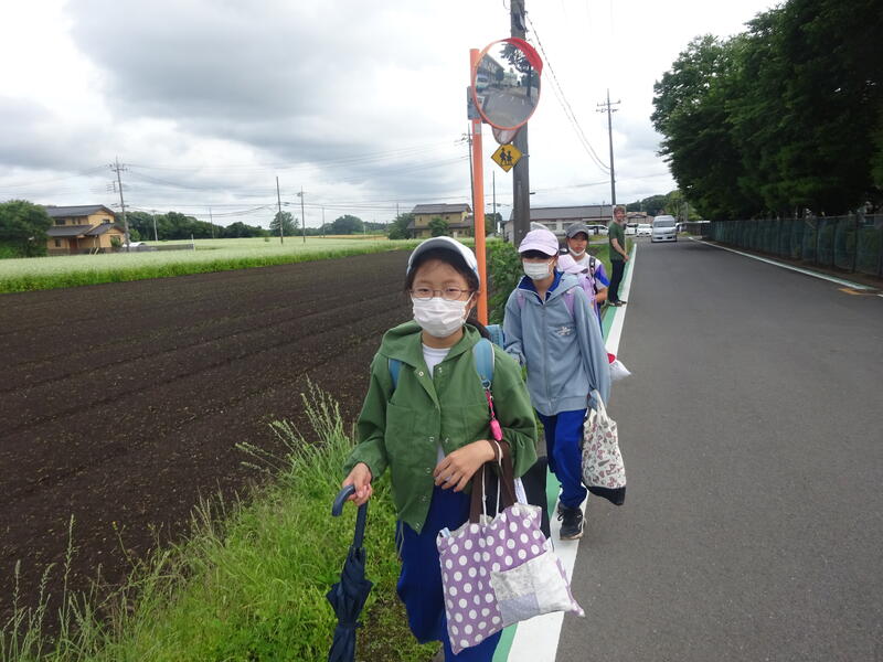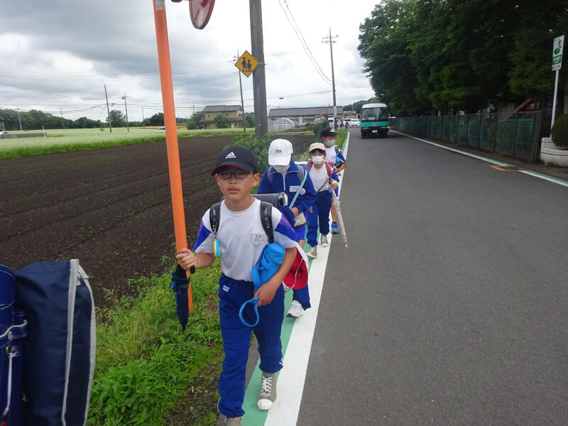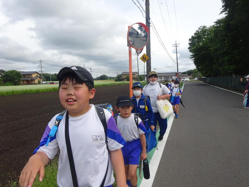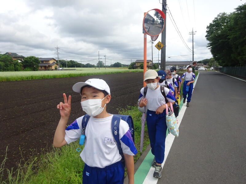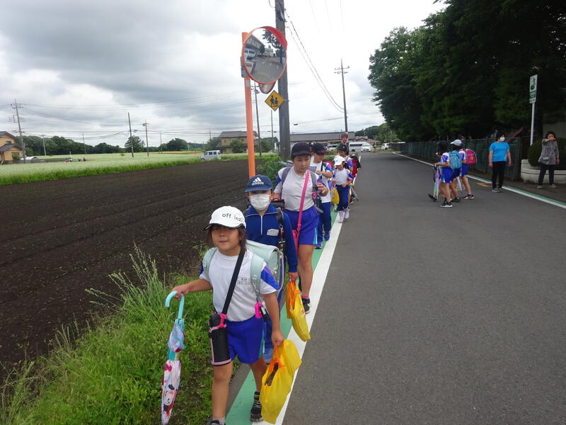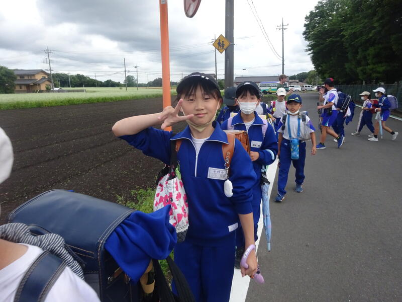 毎日の登下校では、班長を中心に一列歩行ができています。道路の横断についても横一列横断がしっかりできるように、声をかけながら行っています。