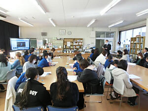 3年生の道徳で研究授業が行われました。勤労についての内容で、好きな仕事を選ぶか安定かなど、将来について考え、積極的に発表していました。その後は、グループで話し合い、発表を行いました。