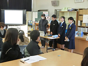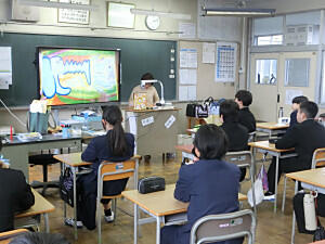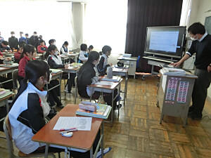 2年生の英語で研究授業が行われました。SDGsに関する内容で、グループで話し合い、その後、発表の動画撮影を行いました。生徒も成功するまで何度も撮影を行っていました。ICTを活用した素晴らしい授業でした。