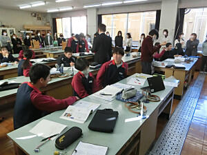 4校時に2年生が、来年度から行われるCBTとちまるチェックの練習を行いました。職員も使い方がわかるように、生徒と一緒に練習しました。