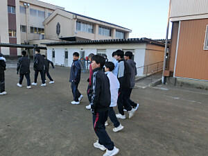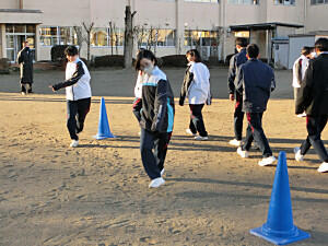 冬期体力づくり2回目になります。今日は、特に冷え込みがすごかったですが、生徒たちは元気に取り組んでいました。