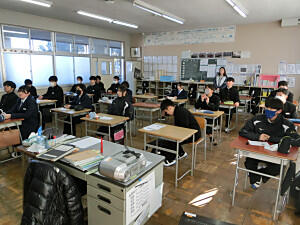 本日は、3年生が確認テストを行っています。いよいよ進路選択の時期になってきました。今まで頑張って力をつけてきた結果が出ることを願っています。