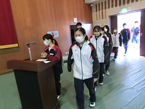長沼中からは、7チームが参加しました。開会式では、長沼中ロボコン研究会代表のSさんが選手宣誓を行いました。