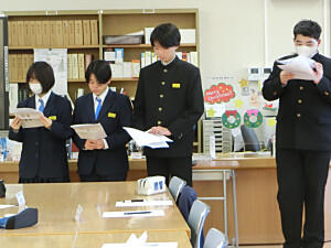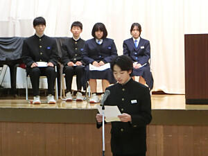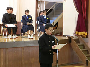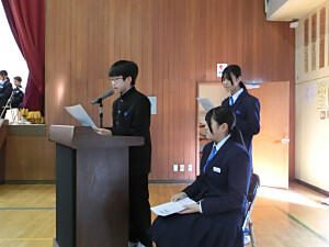 今日のお昼休みの演説は、生徒会長候補の3人でした。しっかり学校のことを考え、発表していました。