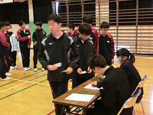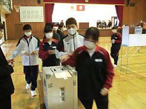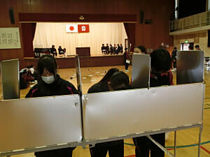 本日、立候補者による立会演説会が行われました。選挙管理委員長のあいさつの後、副会長2名、会長3名の立候補者の発表がありました。その後、選挙管理委員より投票について説明があり、投票が始まりました。発表は明日になります。