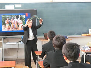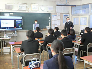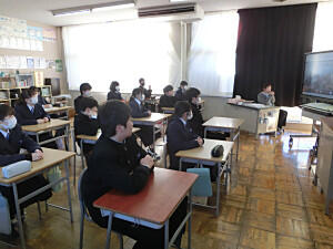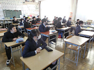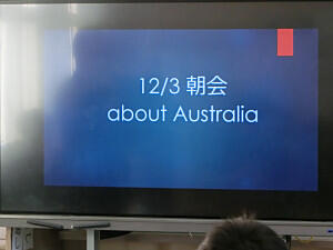 本日の朝会は、校長講話をリモートで行いました。今回は、現在、海外交流しているオーストラリアについて、英語で説明しました。オーストラリアの英語の質問に、生徒たちもしっかり答えることができました。その後は、学校評価アンケートで、生徒からいくつかの質問があったので、生徒指導主任より対応についての話がありました。