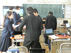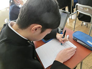 3年生の道徳で研究授業が行われました。勤労についての内容で、好きな仕事を選ぶか安定かなど、将来について考え、積極的に発表していました。その後は、グループで話し合い、発表を行いました。