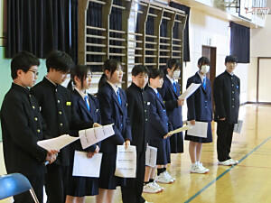 本日の朝会は、校長講話をリモートで行いました。今回は、現在、海外交流しているオーストラリアについて、英語で説明しました。オーストラリアの英語の質問に、生徒たちもしっかり答えることができました。その後は、学校評価アンケートで、生徒からいくつかの質問があったので、生徒指導主任より対応についての話がありました。