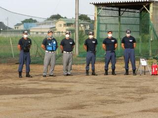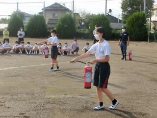 火災を想定した避難訓練を行いました。二宮分署の方を講師に招いて消火器の使用方法についても学びました。