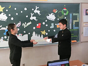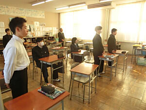 本日の朝会は、校長講話をリモートで行いました。今回は、現在、海外交流しているオーストラリアについて、英語で説明しました。オーストラリアの英語の質問に、生徒たちもしっかり答えることができました。その後は、学校評価アンケートで、生徒からいくつかの質問があったので、生徒指導主任より対応についての話がありました。