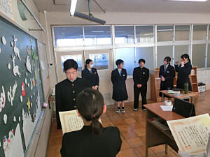 いよいよ、入試が始まり、進路に向けて頑張っている3年生。今日は、学年末テストになります。1年間の力を出し切ってください。