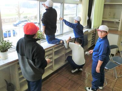 5時間目に、3学期の大掃除を行いました。机・椅子を廊下に出し、床や窓の水拭きをするなど、誰もが一生懸命にきれいにしています。放課後、職員で校内ののワックスがけをしました。