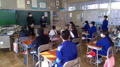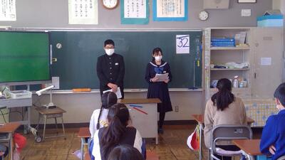6年生の学級活動で、山前中学校の3年生2名に来ていただき、中学校での生活について教えていただきました。