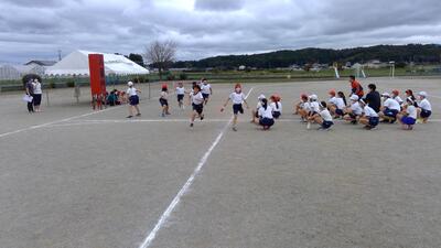 業間は、紅白リレー代表児童が練習を行いました。整列・入場と、リレーのバトンタッチについて確認し、練習を行いました。