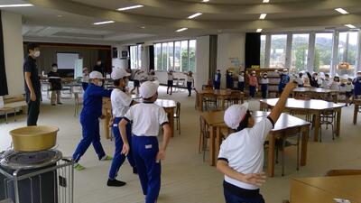 業間に全校リレーの練習を行いました。今年は、密を避けるために上学年と下学年に分けて実施します。それぞれ、入退場を含め、通して練習を行いました。