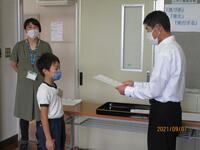 コ ロナ禍で緊急事態宣言が発令されている中、我慢することが多くなっています。学級委員を中心に、力を合わせ、心を合わせてよりよい学級にしていってほしいと思います。