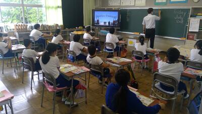 5時間目、6年生の授業の様子です。日本にある世界遺産の数、オーストラリアの国の特徴について写真やビデオを見ながら学習しました。