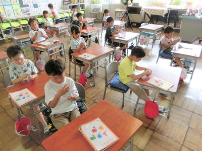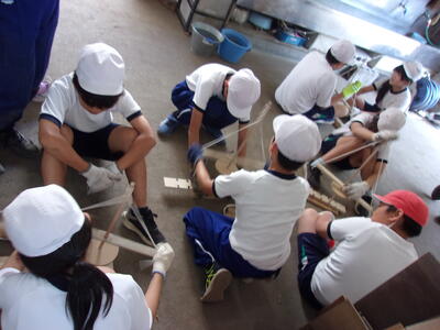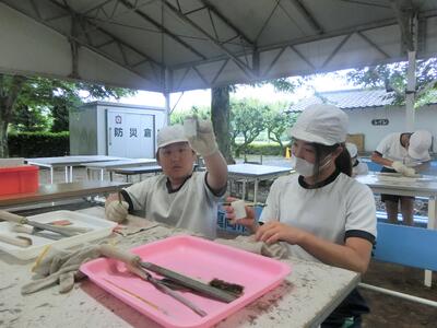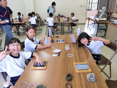 午前中の創作活動では、6年生が勾玉作り、3・4年生が布コースター作りをしました。そしてバイキング給食を食べてから退所式がありました。たくさんの思い出や体験をすることができました。