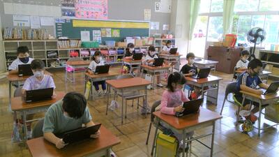 2年生は、学習端末でドリルパーク(国語や算数の問題がたくさんあります)に挑戦していました。