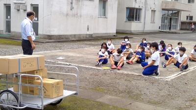 西田井小学校には、災害に備えて市の防災倉庫が設置されています。倉庫の中にどのようなものが入っているか、何に使われるのかを学習しました。