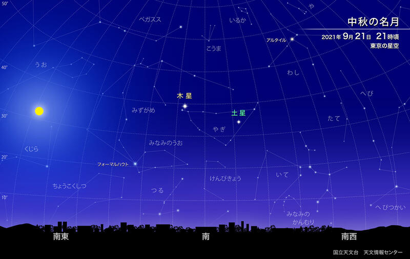 「中秋の名月」とは、太陰太陽暦の8月15日の夜に見える月のことを指します。中秋の名月は農業の行事と結びつき、「芋名月」と呼ばれることもあります。中秋の名月をめでる習慣は、平安時代に中国から伝わったと言われています。(国立天文台、星空情報より)