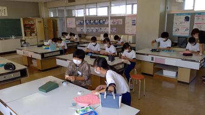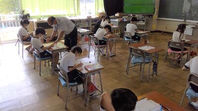 1年生は、連絡帳に宿題や持ってくるものを書き、書き終えたらお絵描きをして静かに過ごしていました。