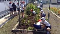 今日は、朝からよく晴れています。4年生は、教材園の雑草が伸びていたので、除草を行いました。栽培しているナスやピーマンが大きくなっていたので、収穫しました。