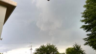 昨日現れた漏斗雲の画像です。天気が急変し空が暗くなったときはたときは、このような雲がないかを確認するとよいと思います。
