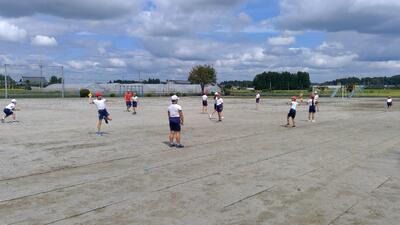 5年生は体育の授業を行いました。1学期にエキスパートティーチャーから教えていただいた投げ方を思い出しながら投の運動を行い、後半は、100走のタイム測定をしました。運動会に向けて少しずつ準備を進めています。