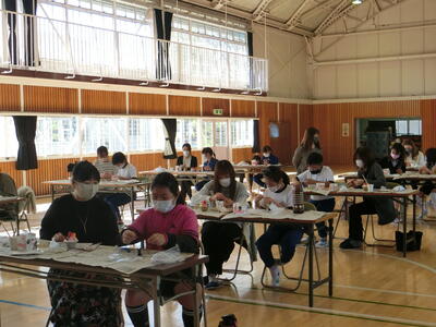 3・4時間目に、4年生親子でキャンドルづくりを行いました。講師に中畑恵先生をお招きし、色がついたロウで部品をつくり、スイーツやハロウィーンのキャラクターのキャンドルをつくりました。