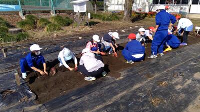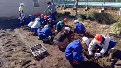 3時間目に4年生がサツマイモ掘りを行いました。いもが大きく育ち、苦労して掘っていました。