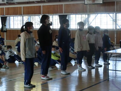 業間に人権集会を行いました。最初に人権標語優秀作品の表彰を行いました。7名の児童が表彰されました。各学級の廊下に全員の標語が掲示してあります。どの作品からも、友達のことを思い、書かれたことが伝わってきます。
