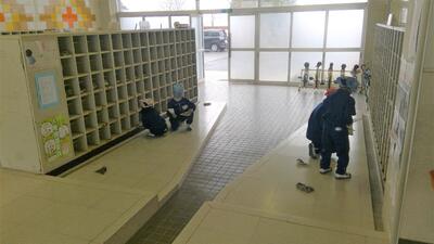 今日は1年生が、計画したVS活動を実施してくれました。1年生は昇降口の靴箱の清掃をしてくれました。靴箱用の手帚と小さな塵取りを使って、靴箱一つ一つをていねいに掃除してくれました。