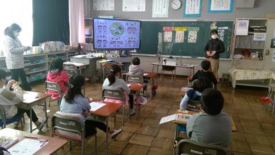 2時間目に、栄養指導教諭・望月先生をお迎えして、「しっかり食べて元気な体をつくろう」というめあてで学習しました。血や肉・骨になる食品、力・熱になる食品、体の調子を整える食品について知り、バランスよく食べることで元気な体が作れることを学びました。