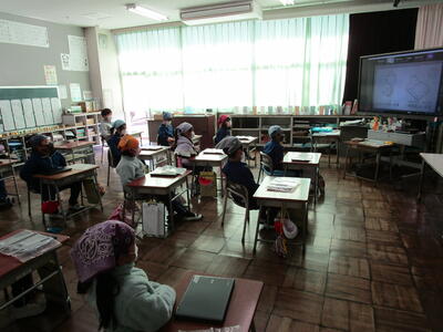 3年生が代表で3学期に頑張りたいことを発表してくれました。4年生に向けての準備として、上学年としてみんなのお手本となれるよう行動すること、今までに習ったことを生かして学習をすること、コロナ対策を取りながら丈夫な体になるよう運動などに取り組みたいと目標を立て、全校生の前で発表しました。