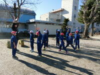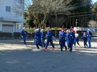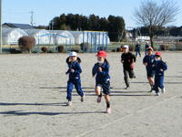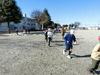 業間の時間は、今年最後の「体力つくり」です。準備運動をして、子供たちは元気いっぱいで、5分間走りました。走り終わったら整理運動もしています。