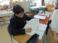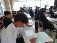 教科書の長文を読んで、質問に英語で答えました。