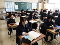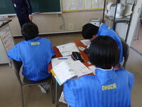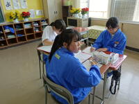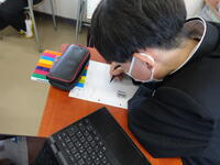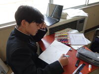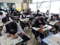 担当が不在のため、卒業式の式歌「旅立ちの日に」の歌詞を書き写して学習しました。早く終わったので工作をしました。