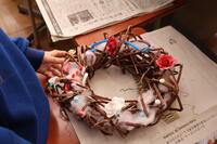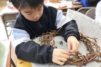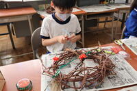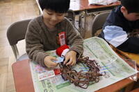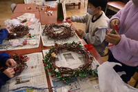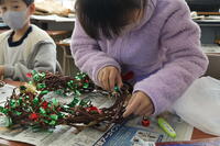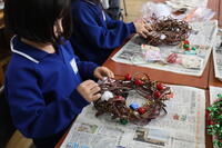 昨日は、1年生の生活科でクリスマスリースを作りました。リースは、サツマイモのつるを自分たちで丸い形にしました。その後、クリスマスのイメージで素敵に飾りつけしていました。子どもたちの中には、「これを家に付けたら、サンタさん喜んで来てくれるかな?」とウキウキしながら作っていた子もいて、かわいらしいなと思いました。