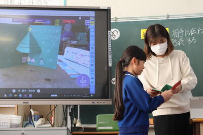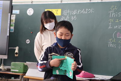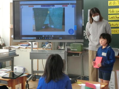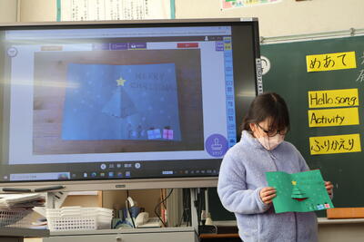 12月の3年生の外国語活動では、クリスマスカードを作ったり、クリスマスに関係するゲームをしたりしました。