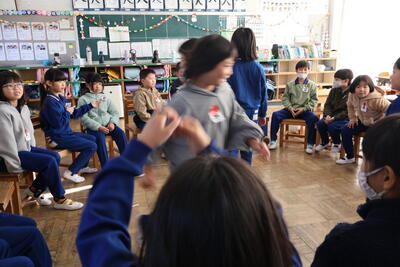 昨日の外国語活動の時間は、今年最後ということで、クリスマスのお題でフルーツバスケットをしました。英語で質問したり答えたりして、ゲームを楽しんでいました。