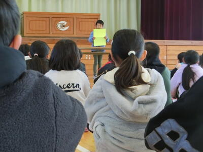 続いて、学習指導主任の中川先生からは3学期の学習についての話が、養護教諭の渡邊先生からは3学期の健康的な生活についての話がありました。