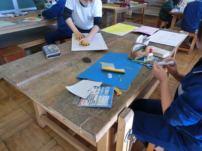 今、学校では、下野教育美術展に向けて図工の作品作りがたけなわです。