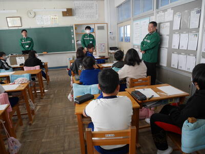 3校時の総合的な学習の時間に、セブンイレブンジャパンの方をお招きして、コンビニエンスストアのSDGsの取組についてお話を聞きました。食品ロスの防止やペットボトルのリサイクル等、コンビニエンスストアではSDGsに向けたいろいろな取組が行われていることを知ることができました。最後の質問タイムでは、SDGsやコンビニエンスストアの仕事について気になることなどを活発に質問していました。